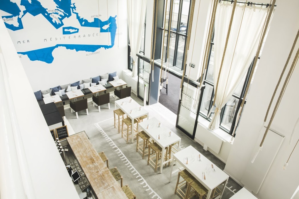 Πες μου λίγο για το design του Yaya …Η διακεκριμένη εταιρεία Saguez & Partners ανέλαβε το design του εστιατορίου. Δουλέψαμε μαζί με τον ιδιοκτήτη της, τον Olivier Saguez, ο οποίος είναι μεγάλος fan της Ελλάδας, και δημιουργήσαμε ένα νέο concept: ένα μοντέρνο εστιατόριο σε στυλ loft, με ταβάνια σχεδόν 7 μέτρων και μέ ζωγραφισμένο πάτωμα που απεικονίζει το παραδοσιακό πλακόστρωτο που βρίσκουμε στα ελληνικά νησιά. Το εστιατόριο έχει χωρητικότητα άνω των 100 ατόμων στον εσωτερικό του χώρο και 80 έξω στη βεράντα. Το μέγεθος επίσης του εστιατορίου είναι σπάνιο για τα δεδομένα του Παρισιού.