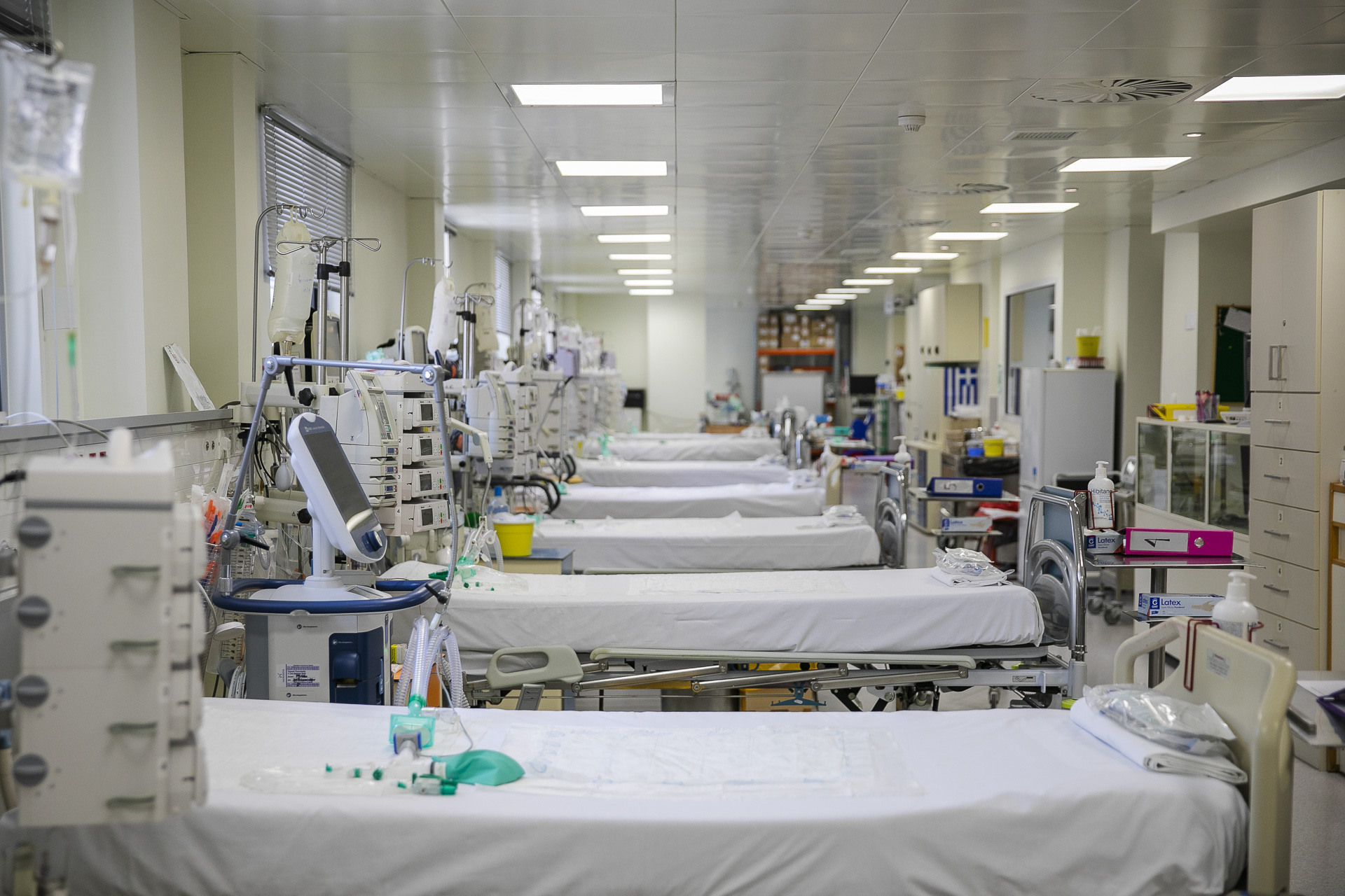 Δειλινό της πρώτης ημέρας επαναλειτουργίας της ΜΕΘ Covid-19 του Ασκληπιείου Βούλας. Λόγω της μεγάλης έξαρσης κρουσμάτων, που συνεπάγεται και συνεχή…