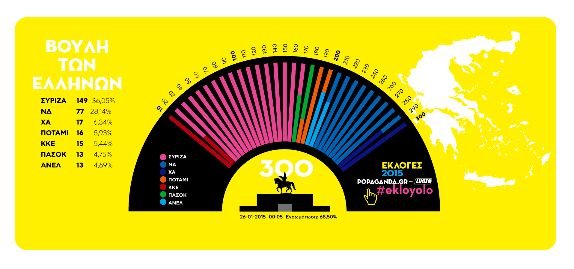 Σύμφωνα με τα τελευταία στοιχεία από το Υπουργείο Εσωτερικών και με ενσωμάτωση 68,50%, ο ΣΥΡΙΖΑ λαμβάνει 36,05%, η Νέα Δημοκρατία…