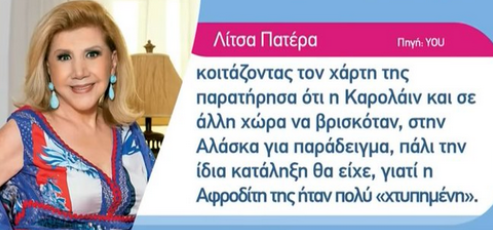 Σάλο έχει προκαλέσει η δήλωση της αστρολόγου Λίτσας Πατέρα για την 20χρονη, Καρολάιν Κράουτς που δολοφονήθηκε άγρια από τον σύζυγό…