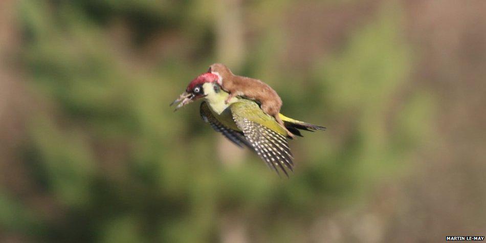 Πως μία νυφίτσα βρέθηκε να πετάει με ένα τρυποκάρυδο;