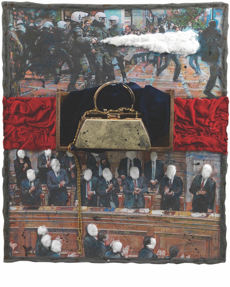 Ανάμεσα στα μελάνια και τα χαρτιά εκτυλίσσεται η έκθεση με την οποία εορτάζονται τα εκατό πενήντα χρόνια από την ίδρυσή του Εθνικού Τυπογραφείου, στο Ναύπλιο, το 1825. Έχει τεράστιο ενδιαφέρον ότι τα έργα αλληλοεπιδρούν με το αυθεντικό περιβάλον του ιστορικού κτηρίου, όπου εκτυλίσσεται η καθημερινή εργασία και η ζωή της υπηρεσίας. Ανάμεσα στα έργα που συναντάς διατρέχοντας διαδρόμους κι εισβάλλοντας εκεί που τυπώνεται η Εφημερίδα του Κράτους είναι και η προκλητική σύνθεση του Δημήτρη Σεβαστάκη με τις φιγούρες του Φώτη Κουβέλη, του Αντώνη Σαμαρά και του Βαγγέλη Βενιζέλου πίσω από το δικό του αυτοπορτρέτο. Στην έκθεση συμμετέχουν επίσης ο Γιάννης Αδαμάκης, ο Μιχάλης Κατζουράκης, η Ρένα Παπασπύρου κ.ά.