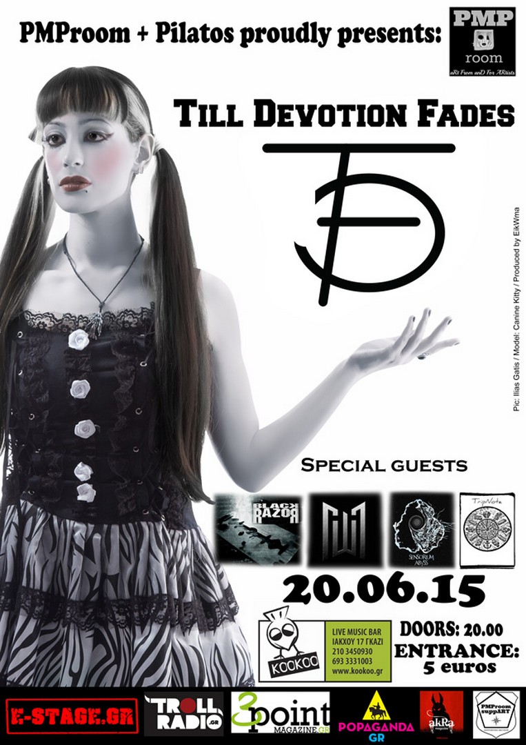 Το ΣΑΒΒΑΤΟ 20 ΙΟΥΝΙΟΥ, στο KooKoo (ΙΑΚΧΟΥ 17, ΓΚΑΖΙ), οι TILL DEVOTION FADES θα παρουσιάσουν το υλικό του E.P. , κομμάτια από το προγραμματισμένο για τις αρχές του 2016 full length album τους και ορισμένα χαρακτηριστικά των επιρροών τους covers, και θα μοιραστούν τα όνειρά τους με παλαιούς και νέους φίλους.
