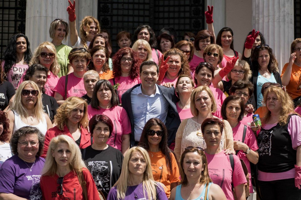 Τις καθαρίστριες του υπουργείου Οικονομικών δέχτηκε ο Πρωθυπουργός Αλέξης Τσίπρας στο γραφείο του στο Μεγάρο Μαξίμου, μετά την ψήφιση της τροπολογίας που τους δίνει τη δυνατότητα να επιστρέψουν στις εργασίες τους. Πέμπτη 7 Μαίου 2015