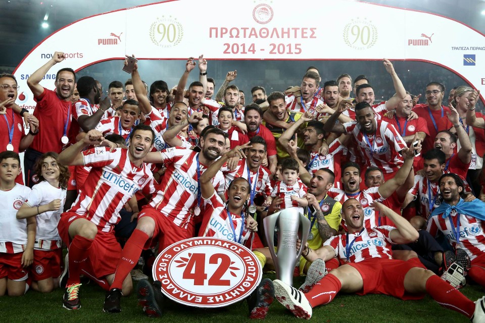 Φιέστα στο γήπεδο "Γ. Καραισκάκης" για την απονομή του 42ου πρωταθλήματος στην ιστορία του Ολυμπιακού. Ο φετεινός τίτλος ειναι ο 17ος τα τελευταία 19 χρόνια. Φάληρο, Κυριακή 3 Μαίου 2015