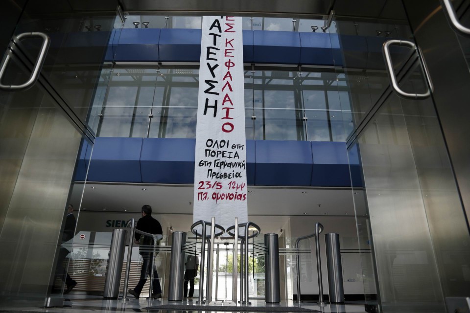 Κατάληψη στα γραφεία της SIEMENS στην Αθήνα απο ομάδα αναρχικών. Δευτέρα 11 Μαΐου 2015