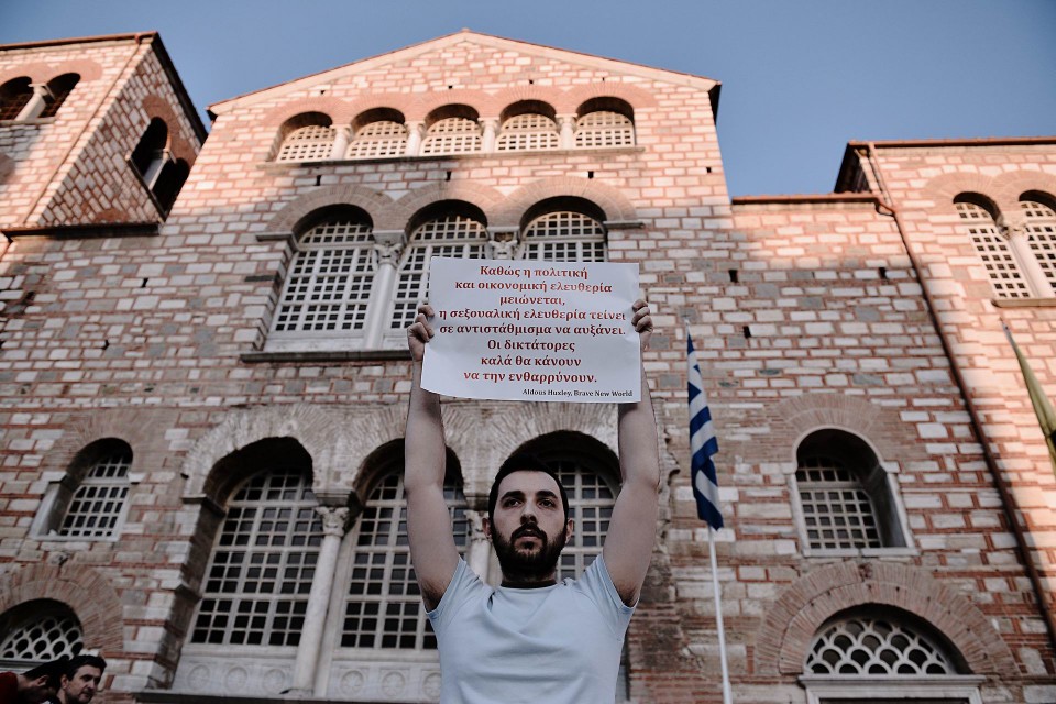 20/6/2014. Μέλη θρησκευτικών οργανώσεων διαδήλωσαν στην Θεσσαλονίκη κατά του Gay Pride. φωτό: Γιάννης Παπανίκος