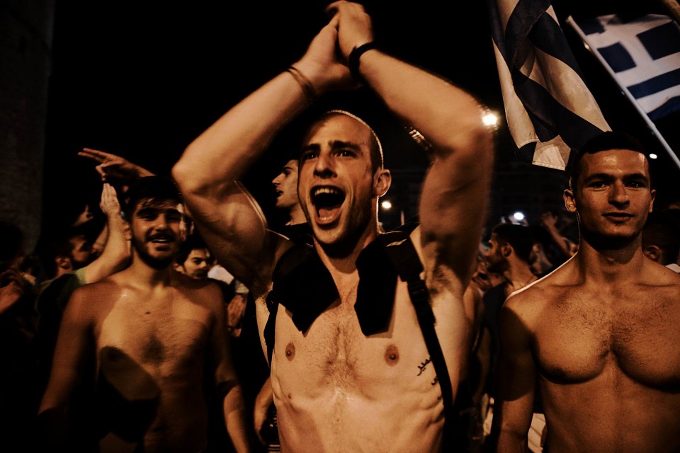 25/6/2014. Οι Έλληνες πανηγυρίζουν για την πρόκριση της Εθνικής ομάδας στους 16 του Μουντιάλ στη Θεσσαλονίκη. φωτό: Γιάννης Παπανίκος